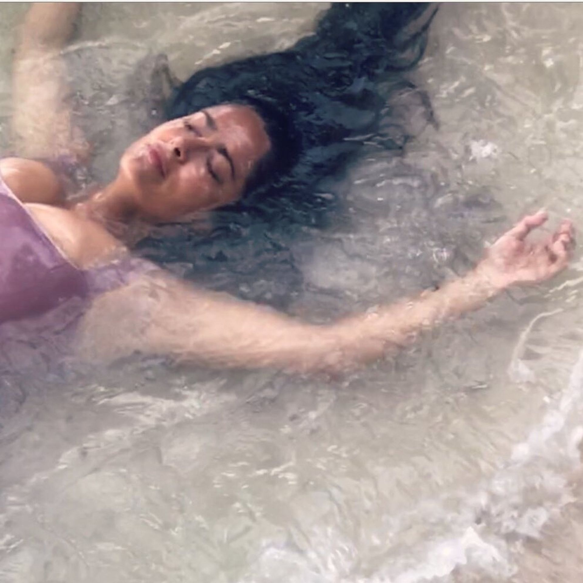 Salma Hayek Sexy Purple Swimsuit