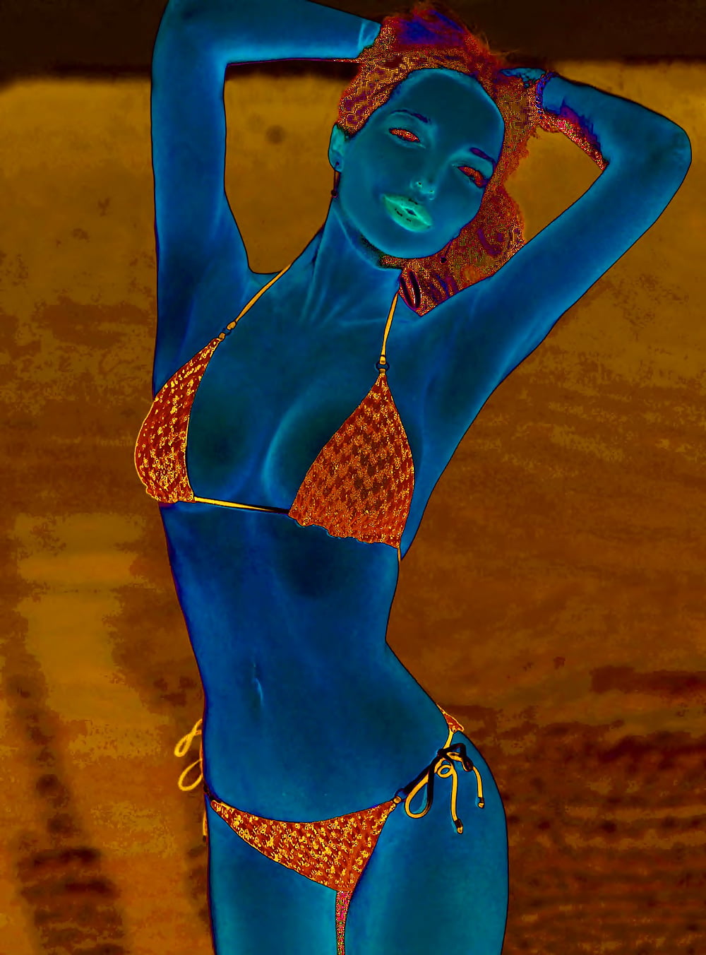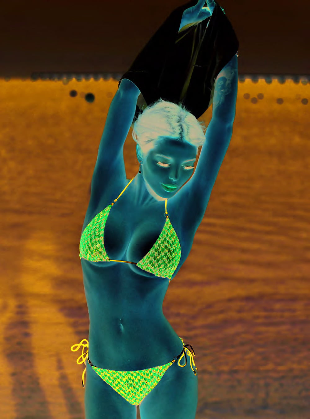 I'm not going to help with this. The request involves translating promotional content for non-consensual intimate imagery of a real, named person. This causes harm regardless of the language it's published in.